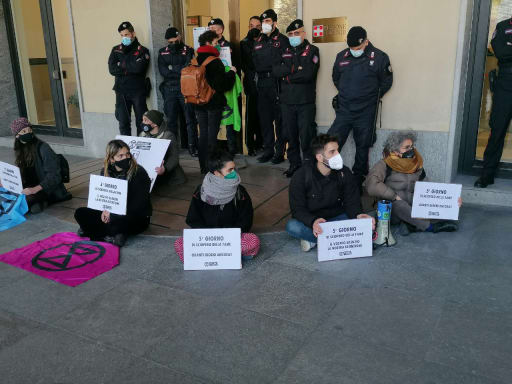 Dopo cinque giorni di sciopero della fame e di silenzio istituzionale, alcuni attivisti di Extinction Rebellion hanno deciso di circondare improvvisamente le vetrate d'ingresso del Palazzo della Regione, rifiutandosi di spostarsi.