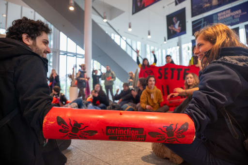Nei giorni in cui Torino ospitava il summit, e intere aree della città venivano militarizzate e trasformate in zona rossa, isolando i ministri dalla cittadinanza, un centinaio di persone appartenenti a Extinction Rebellion si erano riversate in un’atmosfera di festa all’interno del grande atrio del Grattacielo Sanpaolo. «Una manifestazione sicuramente vivace e inusuale, ma assolutamente nonviolenta, come testimoniano i numerosi video di quel giorno» dichiara Matilde «Di fronte a governi e istituzioni finanziarie che continuano a investire miliardi in petrolio e gas, ignorando l’allarme degli scienziati e la preoccupazione dei cittadini, esercitare il diritto a manifestare e dissentire diventa una necessità». Dal 2015 a oggi, infatti, Intesa Sanpaolo ha sostenuto l’industria fossile con 81,6 miliardi di dollari, risultando nella lista delle prime 40 banche a livello mondiale che finanziano l’espansione nel settore.